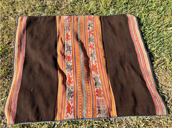 Aguayo textil andino ancestral, tejido en lana alpaca. Prenda tradicional utilizada en su mayoría por mujeres de ascendencia indígena. Puede ser utilizado como mochila, abrigo o adorno. Los diseños varían según la región de donde provienen y son patrones únicos. Provenientes del Norte de Chile.