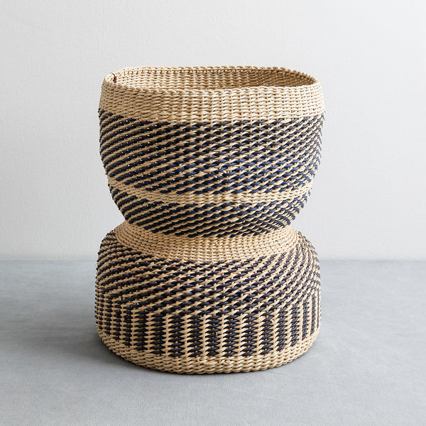Contenedor tejido en Boqui Phil Phil y fibra lup (innovación de plástico reciclado). Pieza perteneciente al Proyecto Alianza Comercial Ona Indap Los Rios y junto a lup.cl