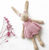 Simpática conejita tejida a crochet por artesanas de la Región de los Ríos en suave algodón hipoalergénico.