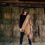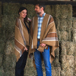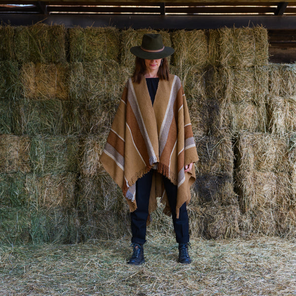 Delicada ruana tejida con suave lana de oveja en colores naturales. Elaborada por manos artesanas de la región de Valparaíso, en telar María con la técnica de ligamento de tela.