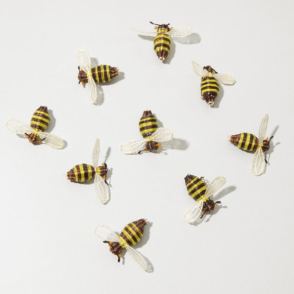 Abejas tejidas de pelo de caballo teñido e Ixtle , ambas fibras 100% naturales. Técnica de tejido tradicional de la localidad rural de Rari.